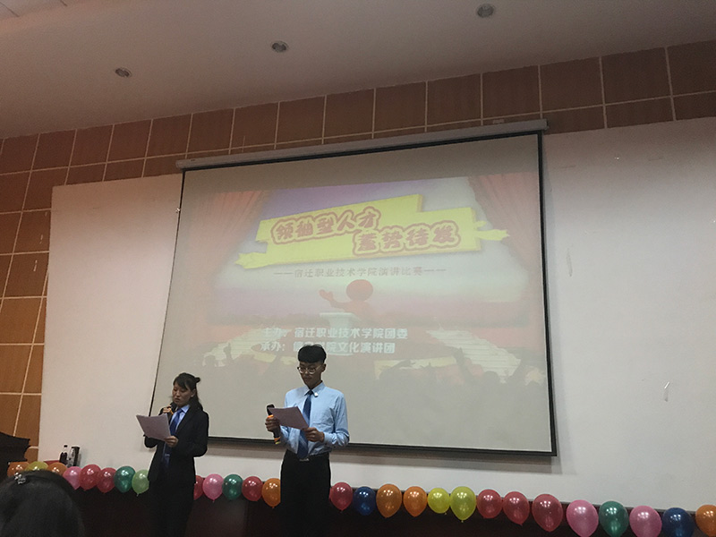 近期、由校团委主办、信息学院文化团承办的宿迁校区月度“领袖人才、蓄势待发”演讲赛近期在学院多功能报告厅隆重举行。