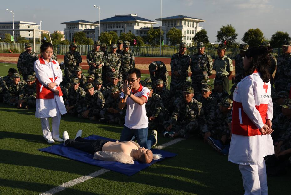 为了让学生了解自救、互救知识,掌握急救技能,增强安全意识,使学生在遇到突发情况时能够迅速采取最正确、最有效的急救措施。9月7日下午,在第19个“世界急救日”即将到来之际,江苏省人民医院宿迁分院(宿迁市第一人民医院 )自救互救志愿小分队到我校为全体参加军训的新生开展“急救知识培训”活动。