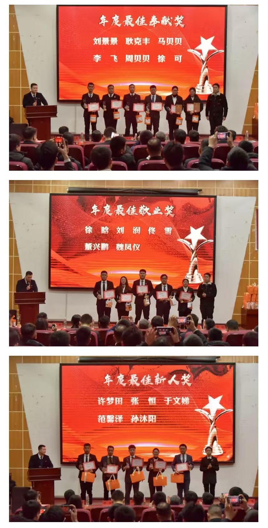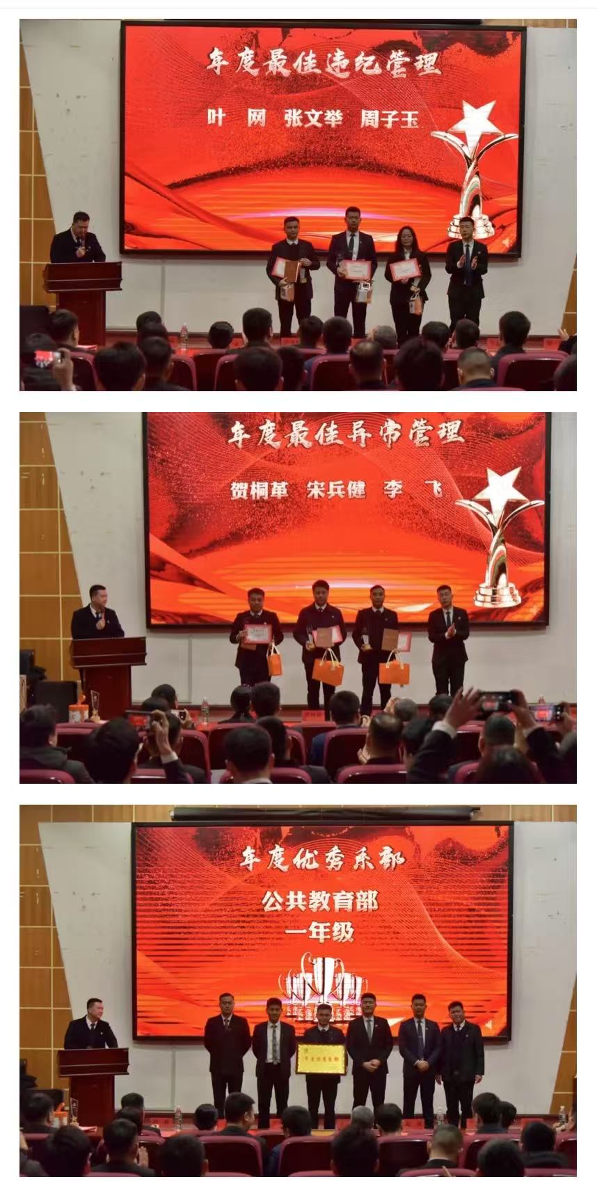 随后,进入表彰环节,大会对 2024 年度在学生管理工作中表现优异的先进个人和集体予以表彰。与会领导分别为荣获 “应知应会考核前十名”、“年度最佳 KPI”、“年度最佳测评”、“年度最佳奉献奖”、“年度最佳敬业奖”、“年度最佳新人奖”、“年度最佳出勤管理”、“年度最佳违纪管理”、“年度最佳异常管理” 的先进个人,以及获评 “年度优秀系部”、“年度卓越奋进学院”、“年度优秀学院” 的先进集体颁发荣誉证书、奖品与荣誉奖牌。在颁奖过程中,优秀辅导员代表上台分享了在学生管理工作中的宝贵经验与实用方法。他们的分享充分展现了辅导员在学生成长过程中所扮演角色的多样性与工作的重要性,令参会人员深受启发。