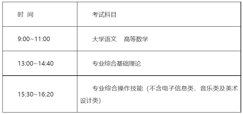 2.专业综合考试(含专业基础理论和操作技能)按本科招生专业大类要求实行全省统一考试,新方案实施初期以笔试形式进行,成绩以原始分计入总分。2022年起以电子信息类、音乐类2个专业大类为试点,专业基础理论知识实行笔试,操作技能进行现场测试,现场测试方案另行公布。