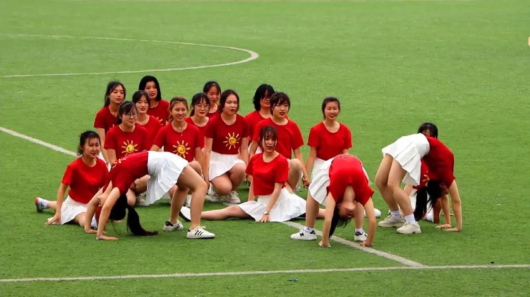 女子教育部的美少女们是五月最美的花朵,他们的健美操表演展现了新时代学子的青春和活力。