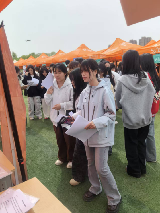 活动期间,毕业生与用人单位交流互动,毕业生们手持精心准备的简历,结合自身专业特长与职业规划,与企业HR深入洽谈。